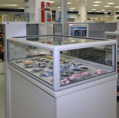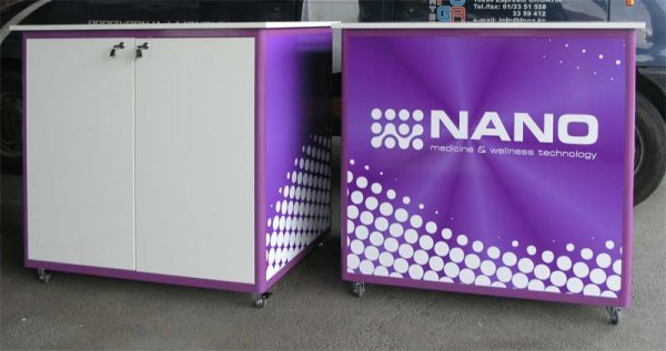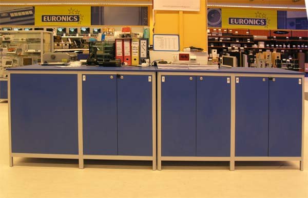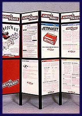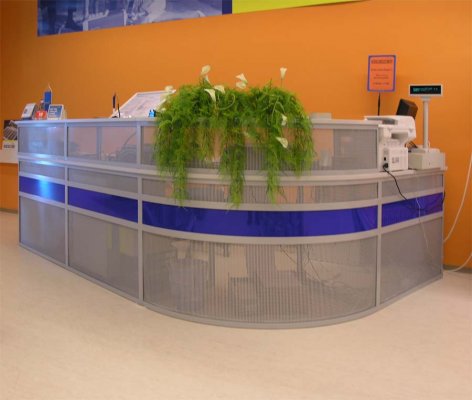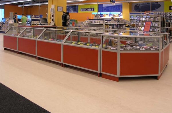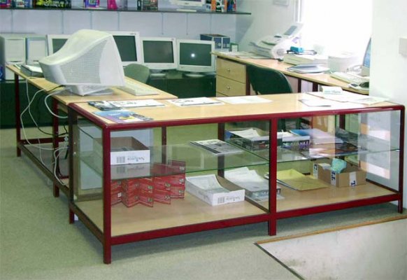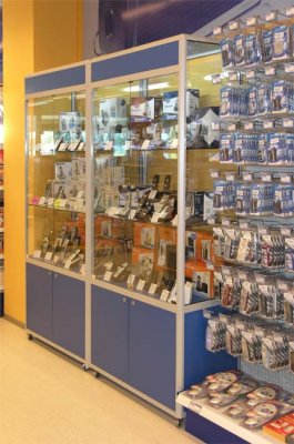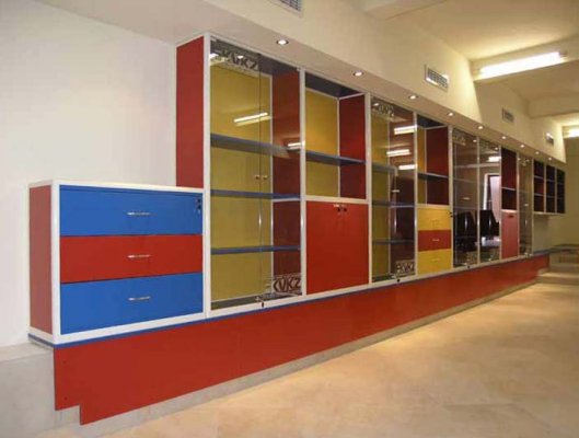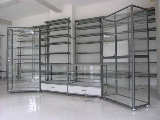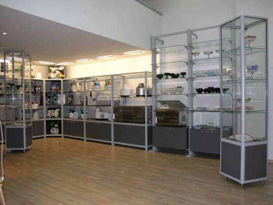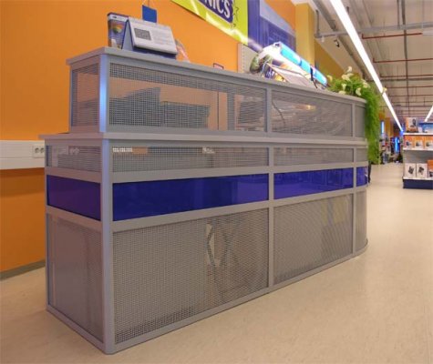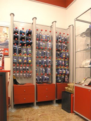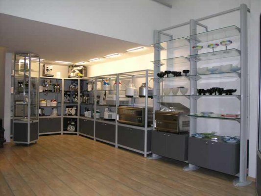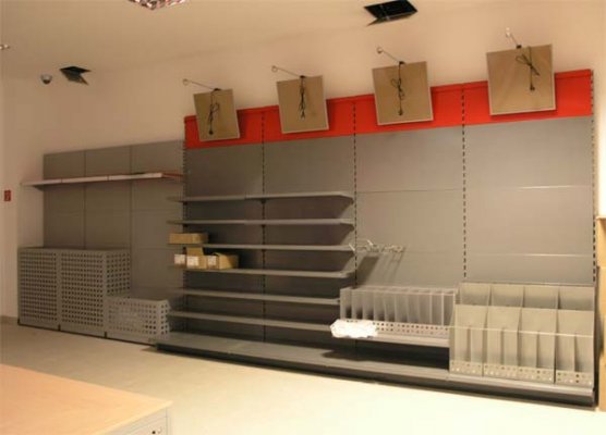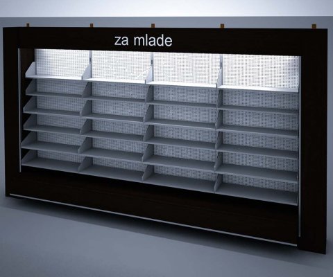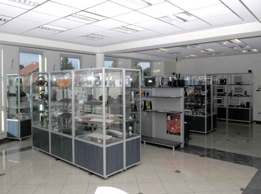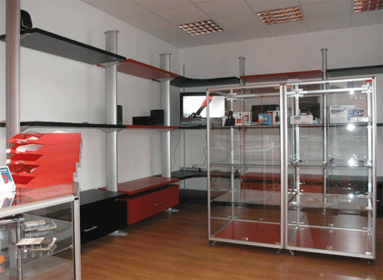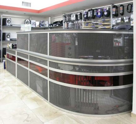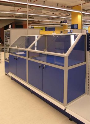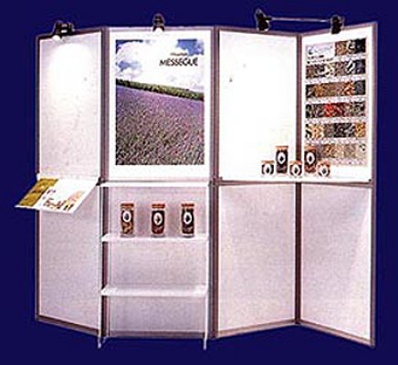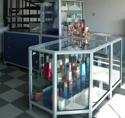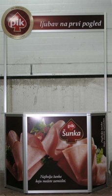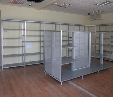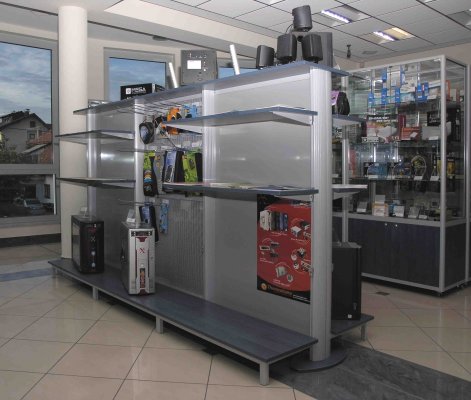 Naglašavamo da je konstrukcija aluminiska tako da su ispune samo iverali ili staklo,što garantira duži vijek trajanja i mogučnost preslaganja i osvježenja prostora. Police ili paneli za trgovine tehničkom robom,mješovitom,za lov i ribolov za muzeje ili trgovine obučom i odječom mogu se dobiti u raznim bojama ,a lagano se kombiniraju sa ostalim asortimanom proizvoda kao vitrine,pultovi,panoi i razne pregradne stijene ,te čine u cijelini funkcionalne, moderne, atraktivne poslovne,sajamske i kancelariske prostore.