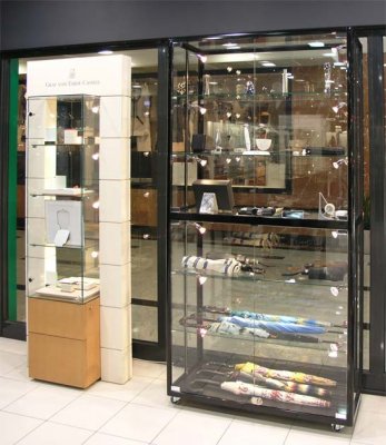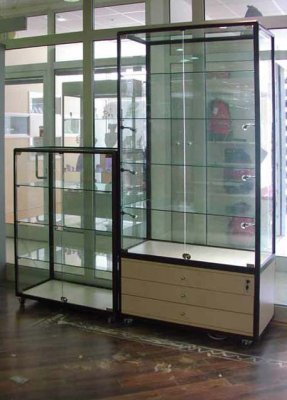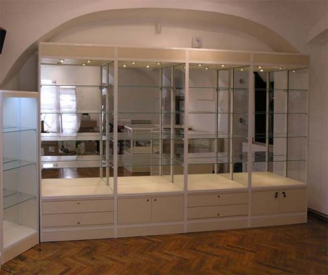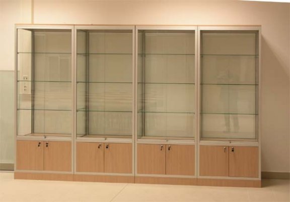 Foga staklene vitrine u potpunosti su prilagodljive pojedinačnim potrebama naručitelja. Staklene vitrine u donjem dijelu mogu imati ugrađen drveni ili stakleni ormarić. Postoji mogućnost ugradnje više vrsta rasvijete od stropne do bočne .Vitrine unutar staklenog dijela na zaključavanje imaju police podesive po visini i po želji kao i naknadnu ugradnju .Naglašavamo da se nosači za police nalaze na aluminijskim profilima koji ujedno čine i konstrukciju tako da je roba na policama sigurna u slučaju razbijanja jednog od bočnih stakla.